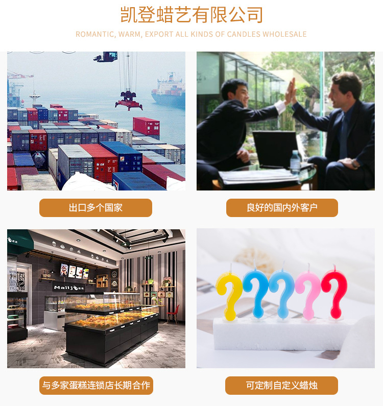 Small wholesale cooperation requirements: Small wholesale is only for the company's stock models, and the colors can be mixed.At present, more than 70 candles have been developed one after another.The company is committed to humanized management and service, striving to do better, thereby providing strong guarantees for customers to occupy the market.