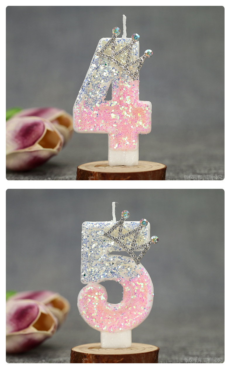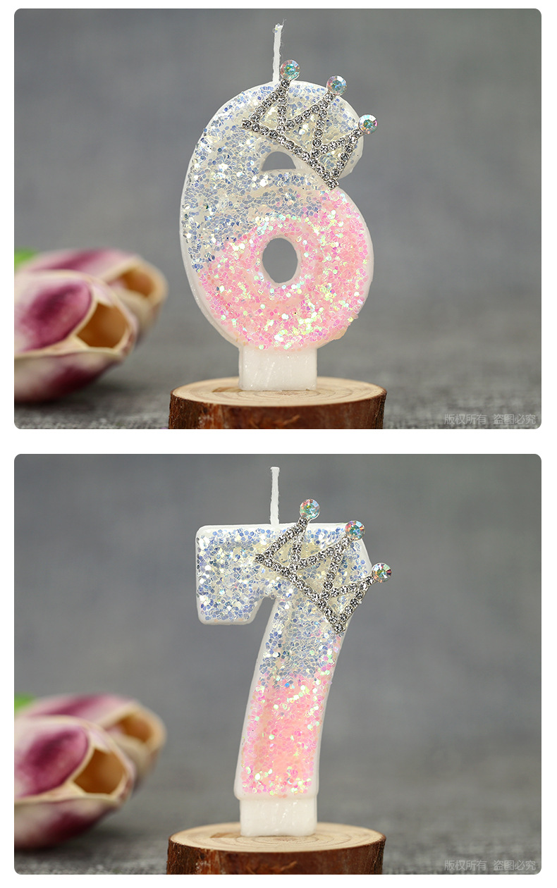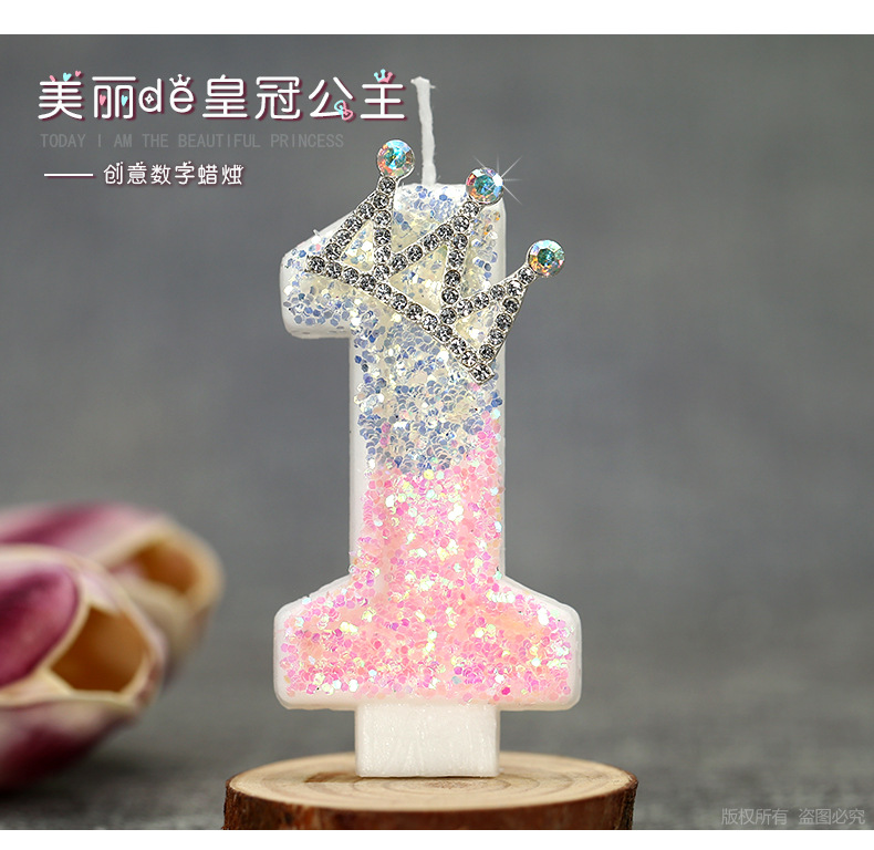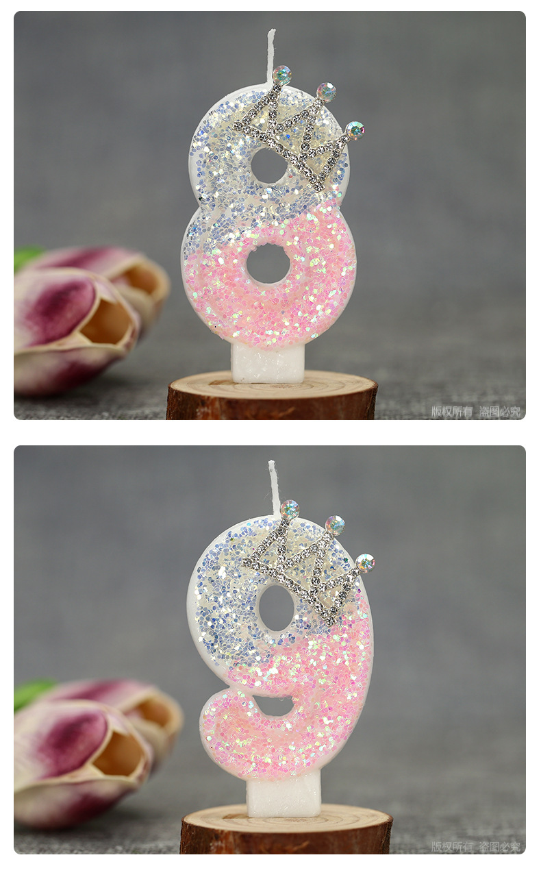 1. Product name: Pink and White Crystal Light 0-9 Crown Creative Digital Candle.