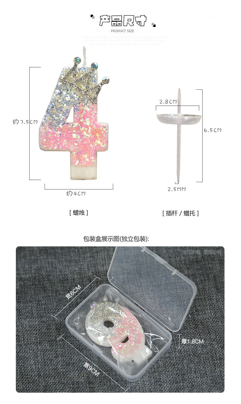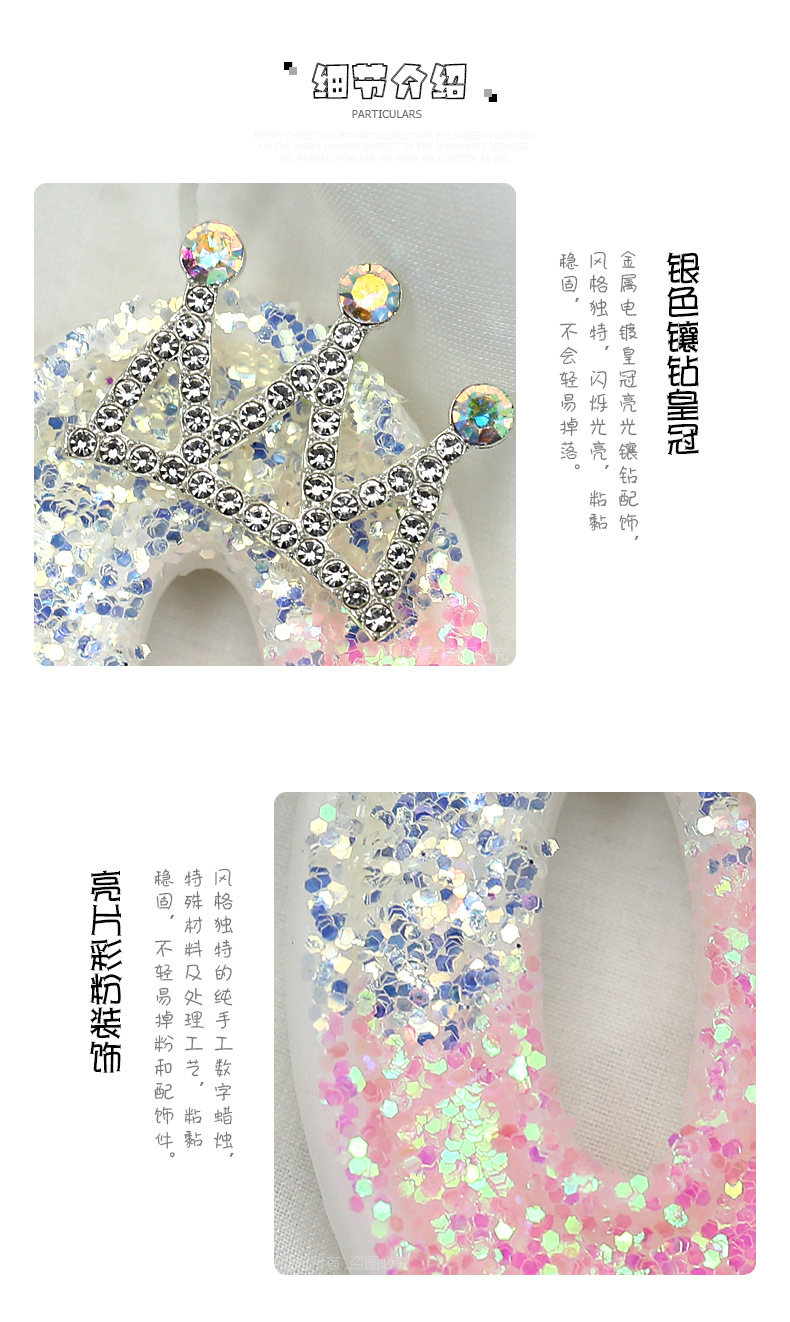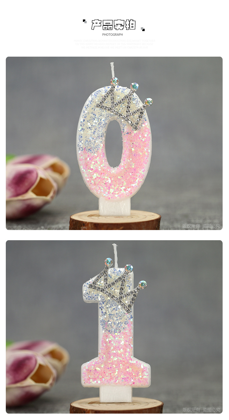 1. Product name: Pink and White Crystal Light 0-9 Crown Creative Digital Candle.